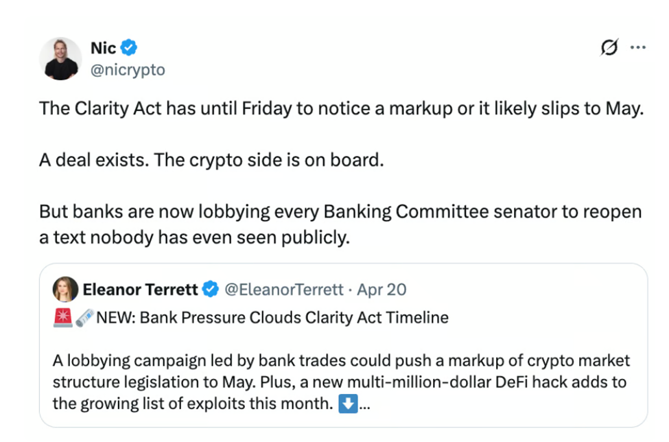 เขายังย้ำว่ากฎหมายฉบับนี้มีความสำคัญอย่างยิ่งต่อทั้งพรรคเดโมแครตและรีพับลิกัน หลังจากที่อุตสาหกรรมคริปโทฯ ต้องผิดหวังมาตลอดสัปดาห์เนื่องจากคณะกรรมการการธนาคารวุฒิสภาไม่ได้กำหนดการพิจารณาตามที่หลายฝ่ายคาดหวัง